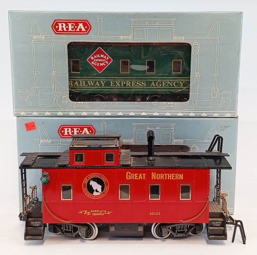 ARISTO-CRAFT G-GA. #42101 GN & 42105 REA CABOOSES (2 OB) INV 254150112
